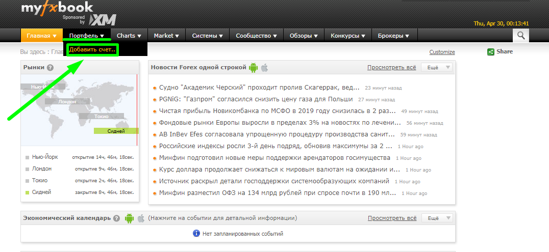 Для подключения к сервису необходимо перейти на сайт MyFxBook