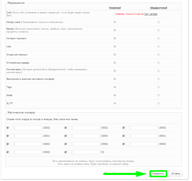 Мониторинг в MyFxBook может быть приватным и общедоступным. Если вы хотите, чтобы статистику вашего счёта видели только вы, и не планируете кому-либо показывать ее, то вам подойдет режим Приватный. Если вы в дальнейшем планируете делиться статистикой вашего счёта (например, с потенциальными партнерами), то вам необходимо настроить параметры приватности с целью изменения статуса на Публичный (Общедоступный)