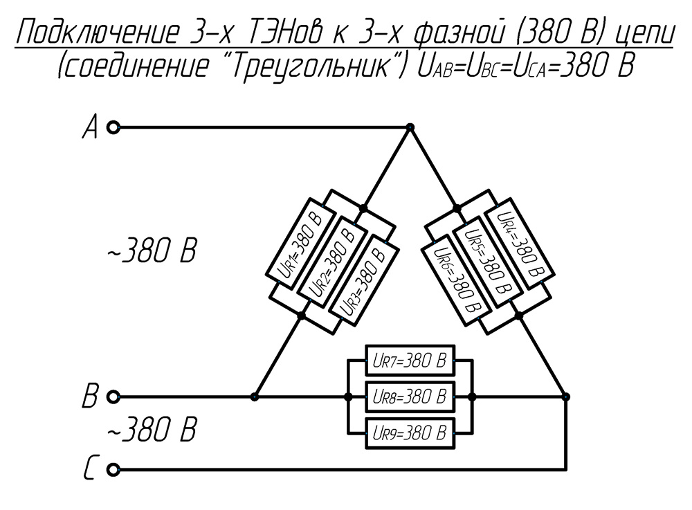 Подключение тэна 380 треугольник