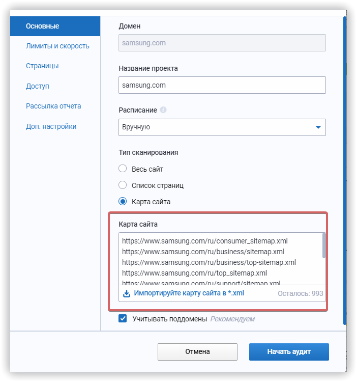 Подключить карту сайта