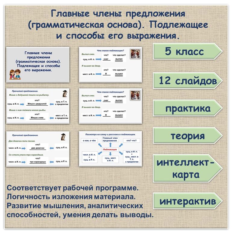 Подлежащее занимает в предложении 53 фотографий