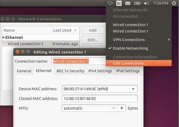 •на вкладке Ethernet введи новый MAC-адрес в поле
