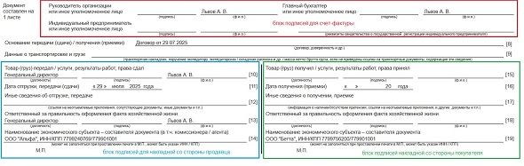 Подпись в строке 10 упд