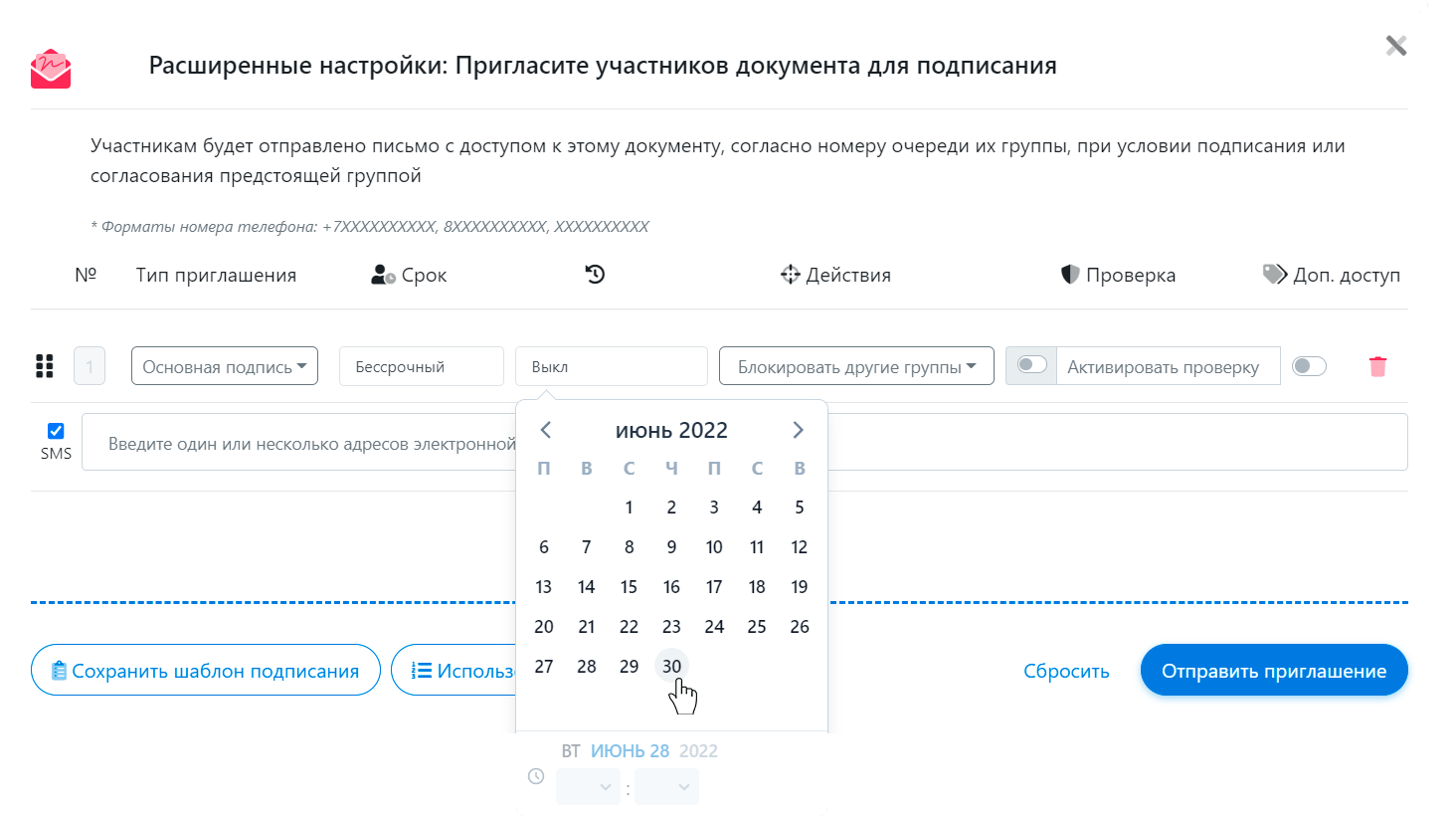 Подписание через смс