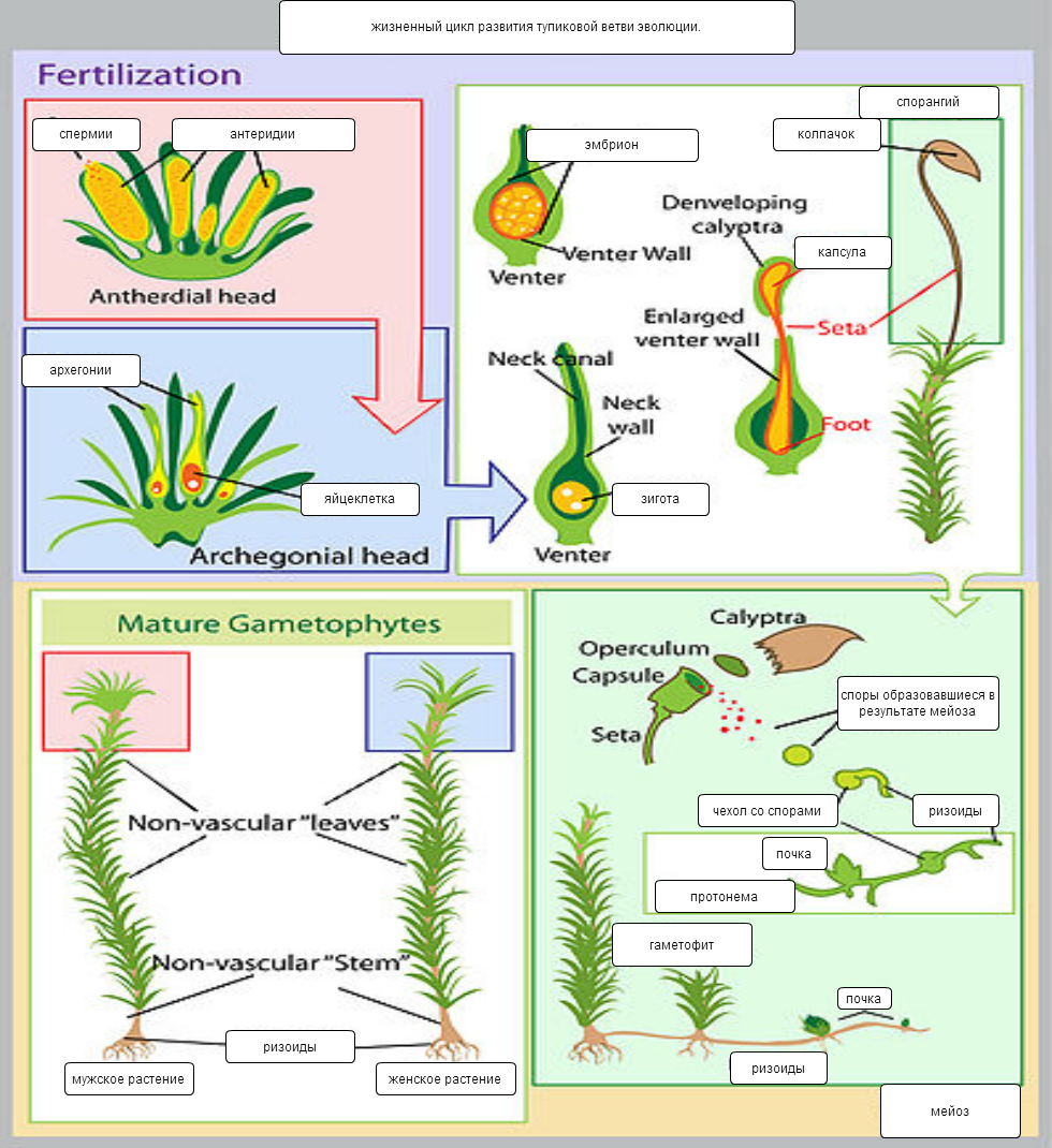 Подпишите цикл развития мхов