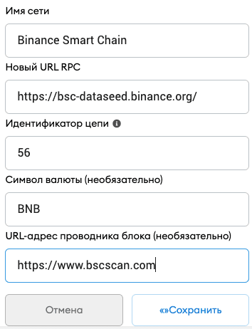 5. Новый URL RPC - https://bsc-dataseed.binance.org/