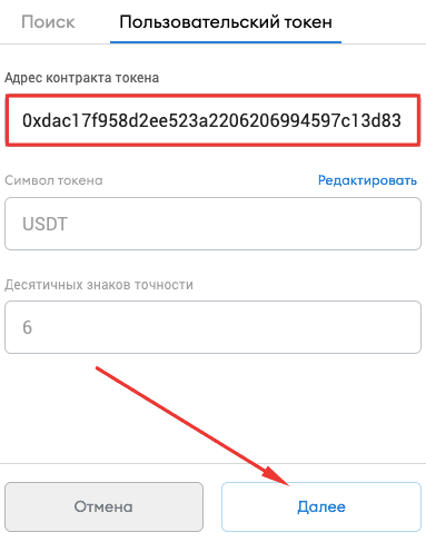 После ввода адреса смарт контракта остальные данные заполнятся автоматически.