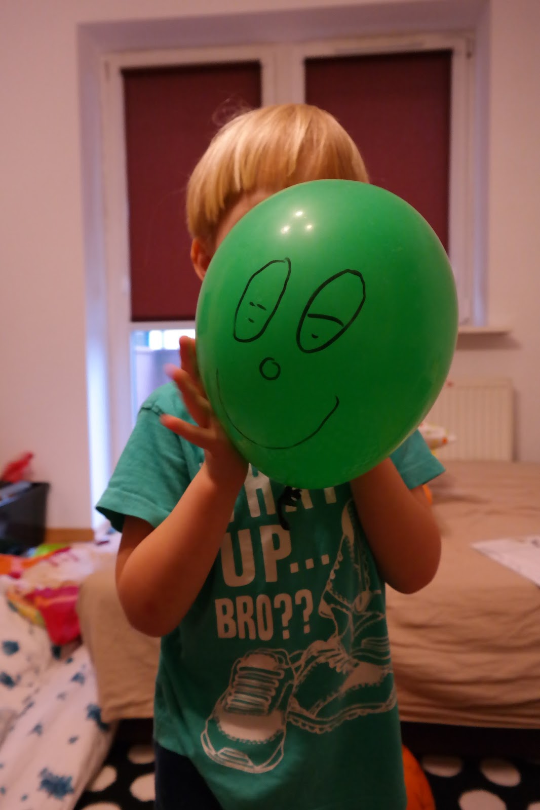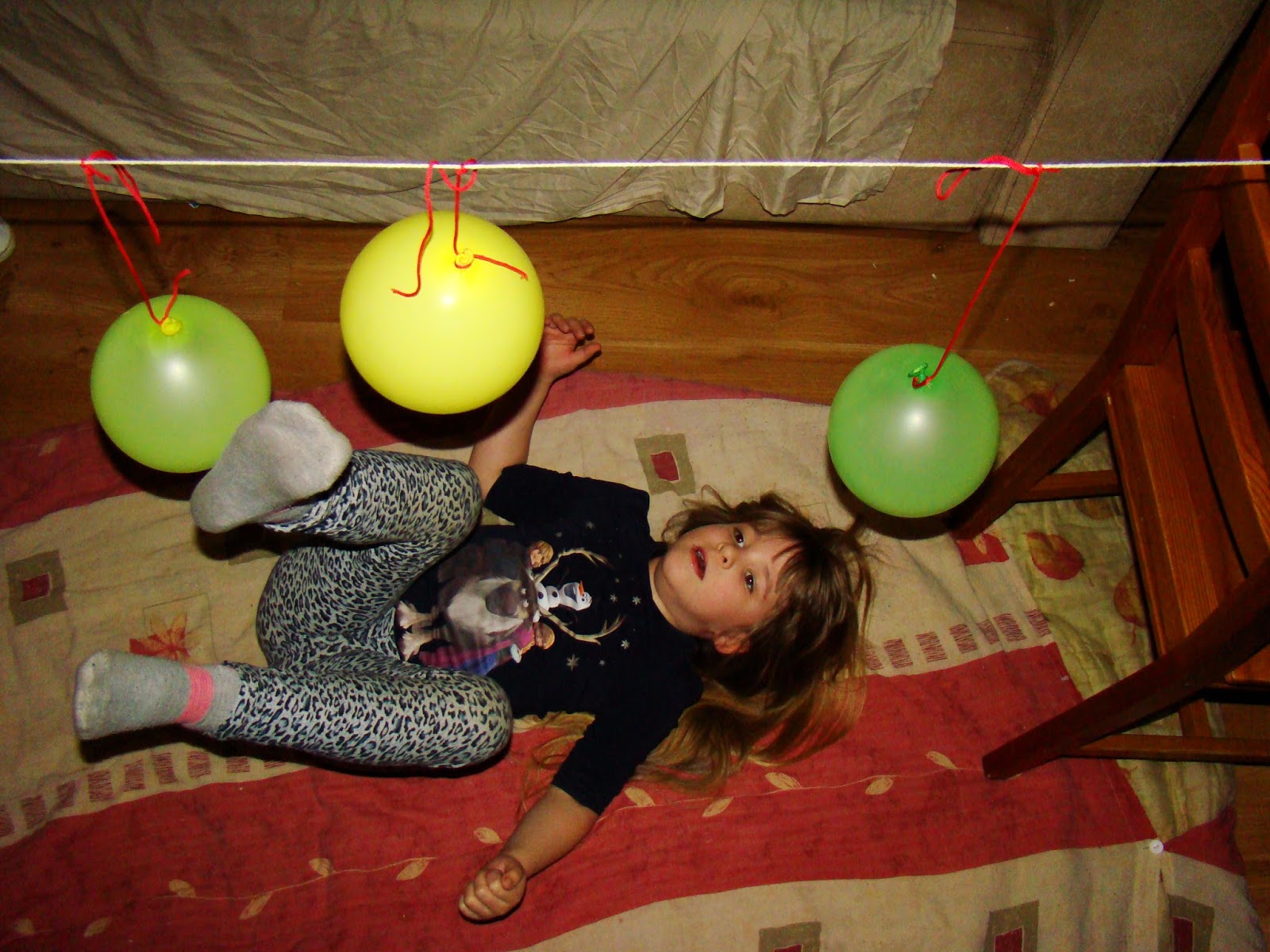- podrzucanie balonika w górę i próby złapania go, a przed złapaniem balonika próby klaśnięcia w dłonie; - unoszenie naprzemiennie prawej i lewej nogi i przekładanie pod nimi balonika; - kopanie baloników do bramki zrobionej np . z obręczy opartej o ścianę .