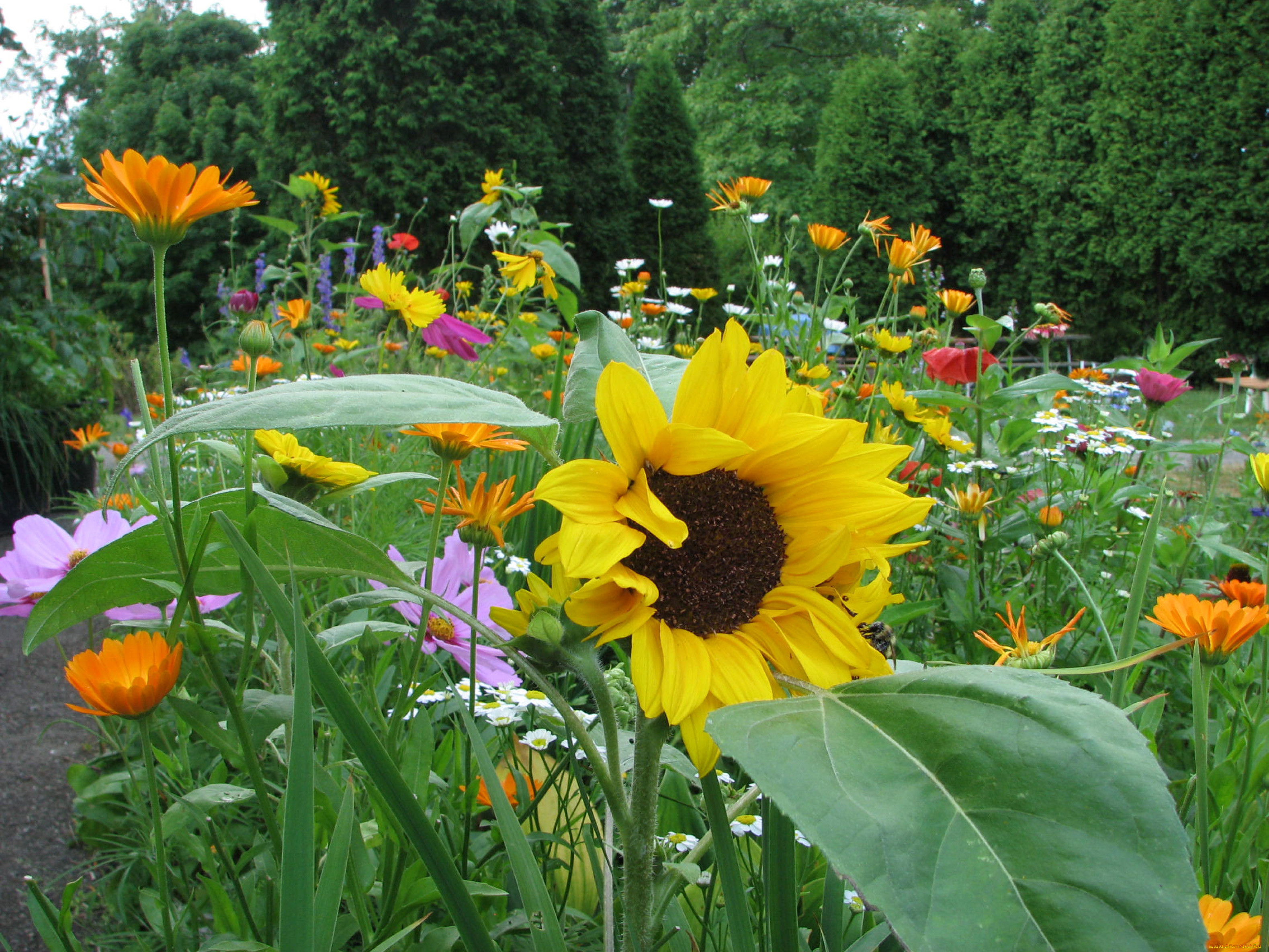 Подсолнухи На Клумбе Фото
