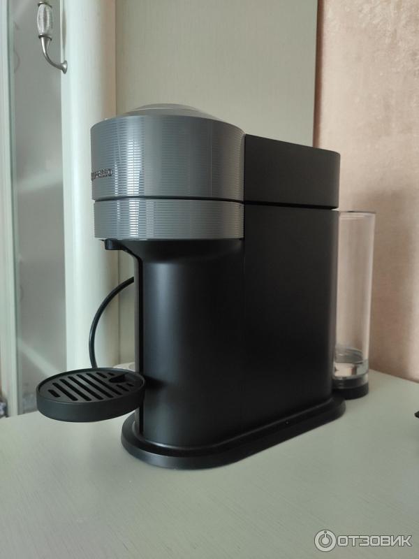 Выбор пал на кофемашину nespresso vertuo next . На кухне она занимает мало места- при этом у неё есть резервуар для воды(сзади), отсек для пустых капсул, и стоечка для кружки .