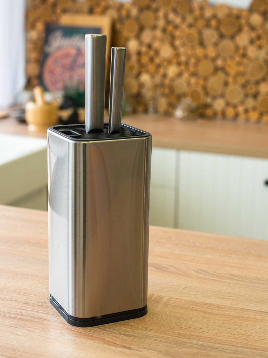 Нож - неотъемлемый атрибут любой кухни . Чтобы он прослужил долгое время без потери первоначальных характеристик, его необходимо правильно хранить . Для этих целей выпускаются специальные подставки .