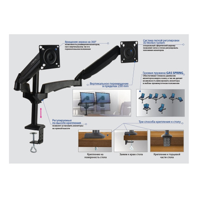Кронштейн для монитора Kromax OFFICE-3 предназначен для крепления 2х мониторов к рабочему столу . Кронштейн устроен таким образом, что мониторы могут свободно вращаться на 360° вокруг основания .