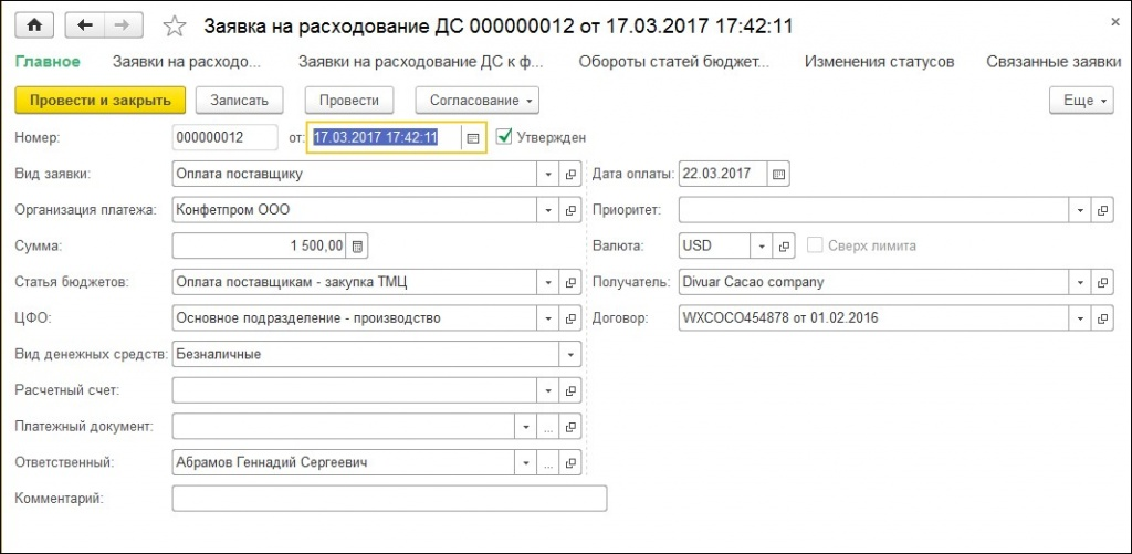 Подтверждает расход денежных средств