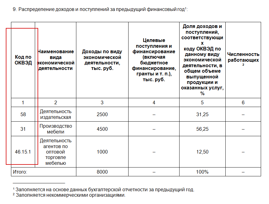 Подтверждение оквэд строка доходы
