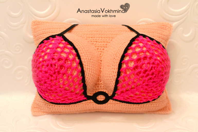 Подушка -грудь крючком: схемы с описанием и видео