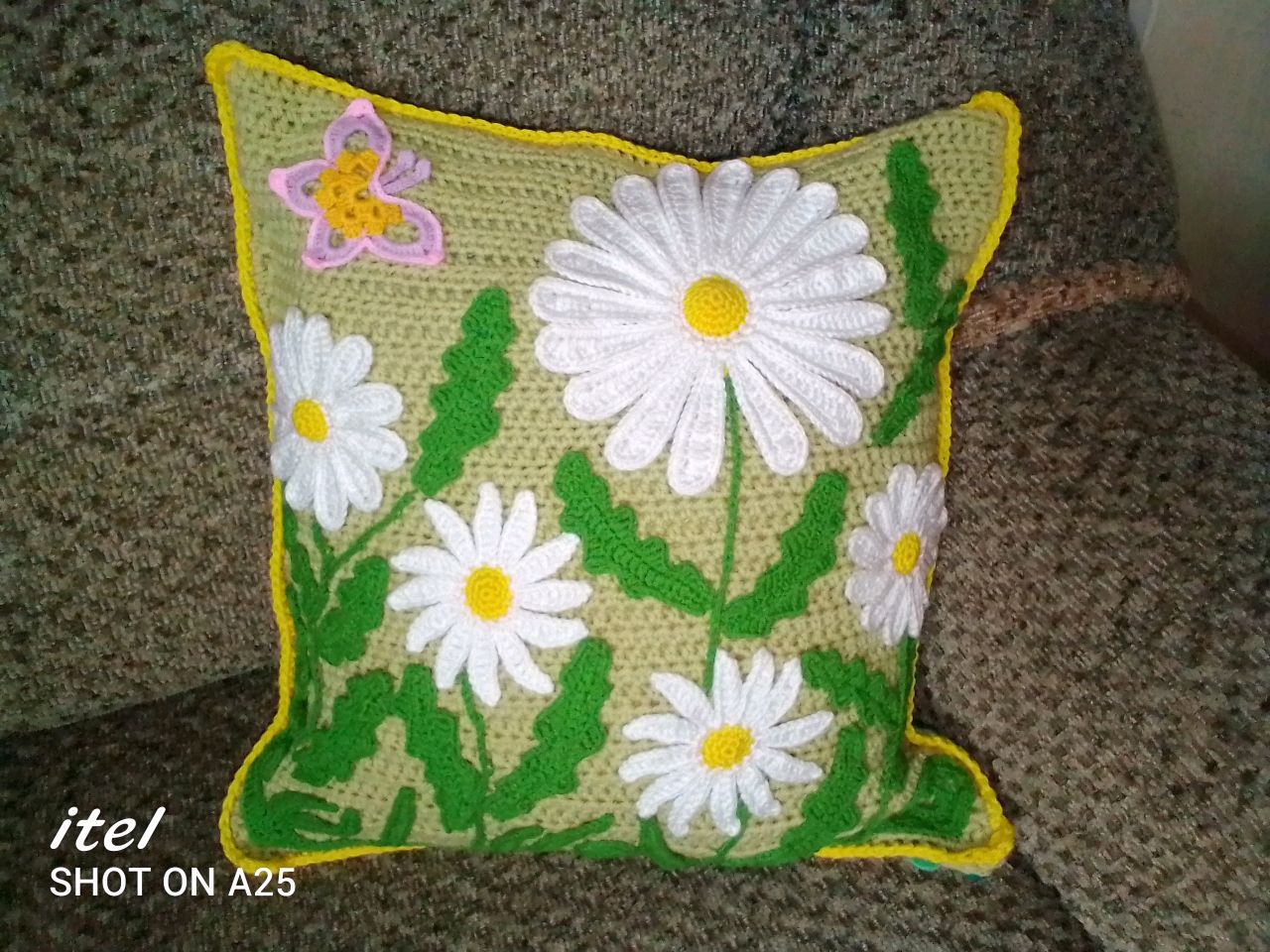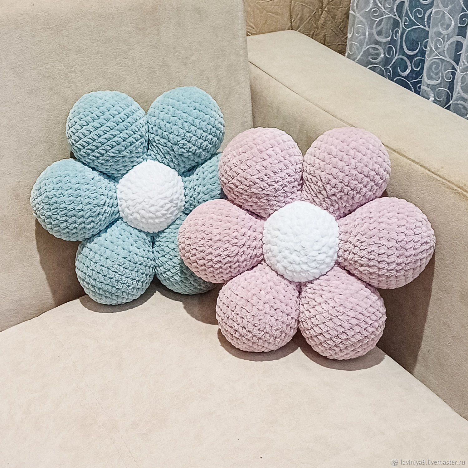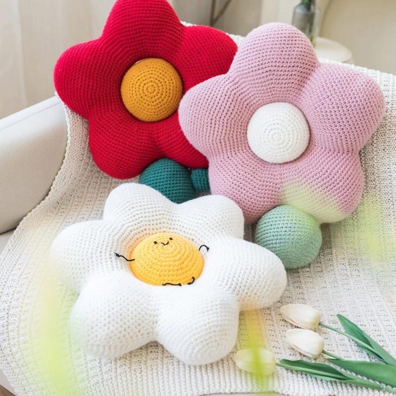 Подушка ромашка крючком 124 фото