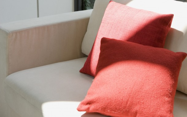 Подушки - обязательный элемент уюта в доме. Обычные подушки для сна обычно белые, так как на них надеваются наволочки. Декоративные же подушечки могут быть любого размера и цвета. Красные подушки отлично подойдут к интерьеру, оформленному в естественных и теплых тонах. При помощи таких декоративных элементов можно создать яркие акценты и разбавить однообразную цветовую гамму интерьера.