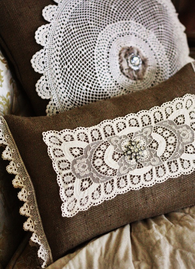 Подушки украшенные кружевом