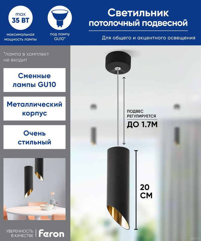 Подвесной светильник gu10 черный