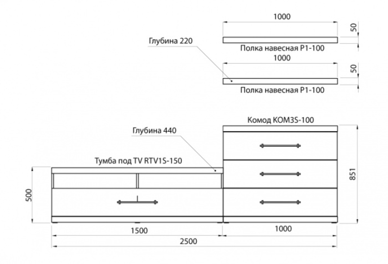 Подвесные тв тумбы размеры