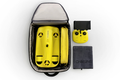 Лучшее в классе качество 4К съёмки под водой без искажений . В комплект входит портативный кейс весом всего 3кг (6 .6lbs) с размерами 40 .6 × 103 .2 × 9 .4см . Внутренняя часть корпуса подводного дрона исполнена из алюминиевого сплава подверженного химическому оксидированию .