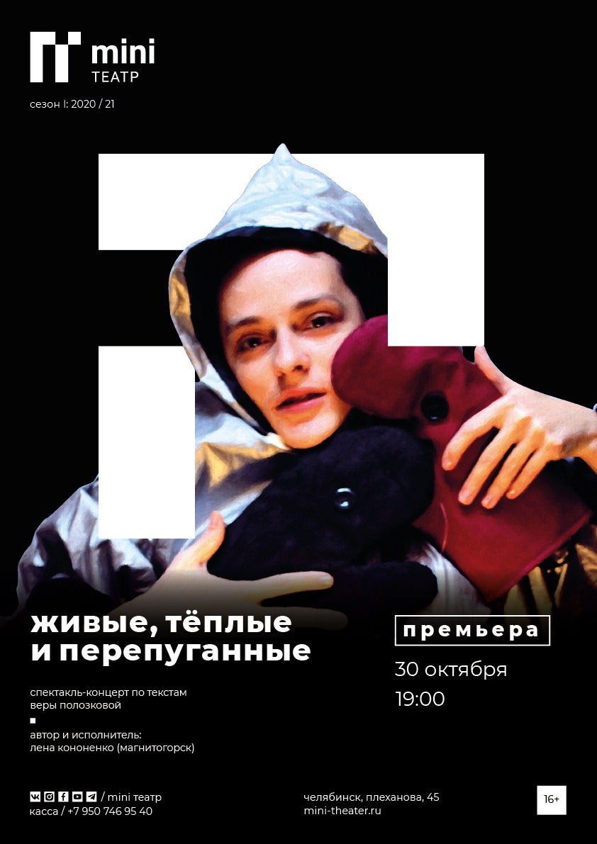До конца октября полностью распланировали работу. Начнем, откроемся с марафона «читок» современной драматургии: «Девочка с головой волка» Алексея Житковского, «Мои друзья антисемиты» Марии Конторович, «Незапрещённый концерт» Екатерины Гузёмы. Запланирован спектакль для зрителей с детьми «Хармс. Игра». И репетируем «Антигону». Откроем гостевую программу mini театра спектаклем-концертом «Живые, тёплые и перепуганные» по текстам Веры Полозковой в исполнении Елены Кононенко.
