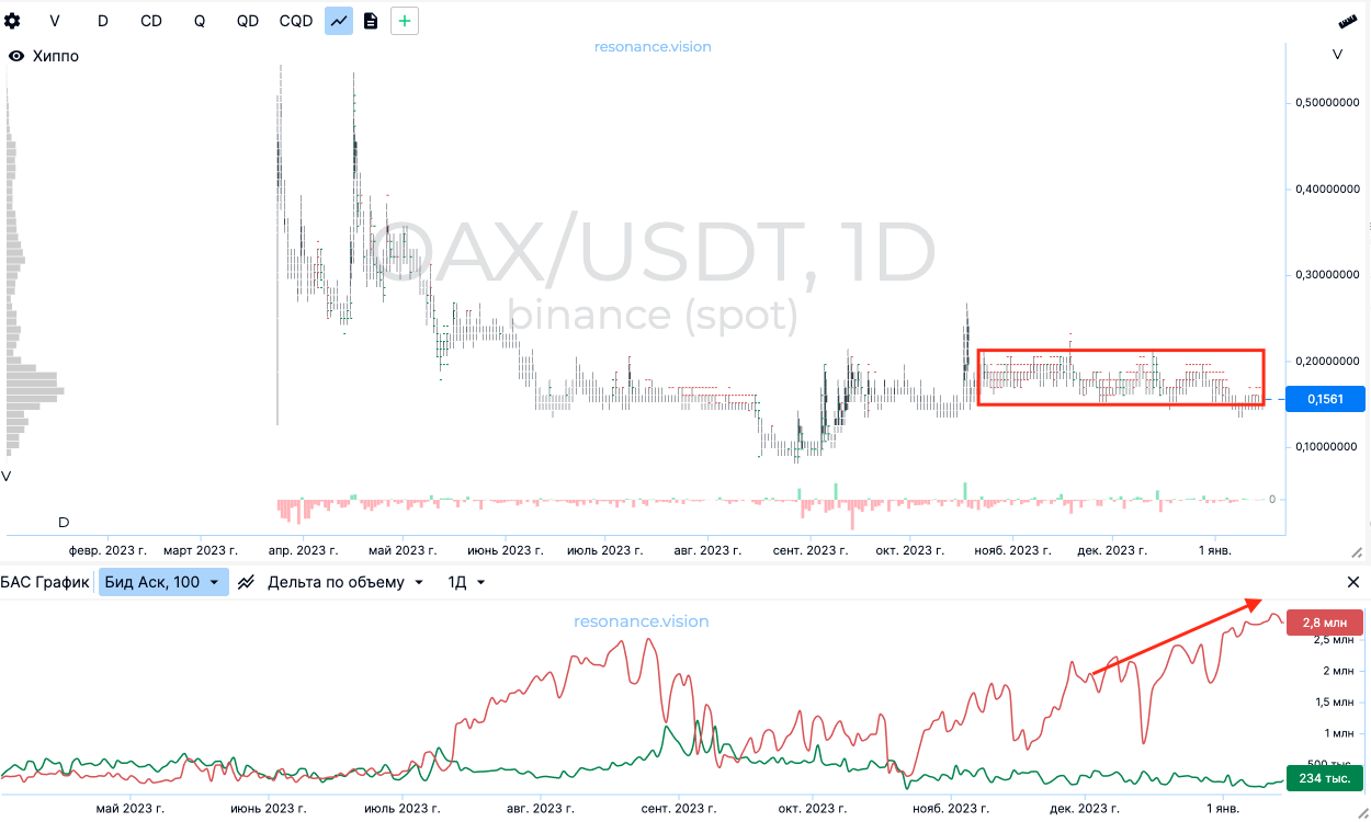 По инструменту хиппо видно, как активно зажимали цену крупными лимитами