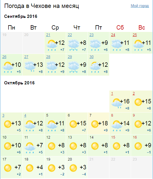 Погода чехов 3 дня
