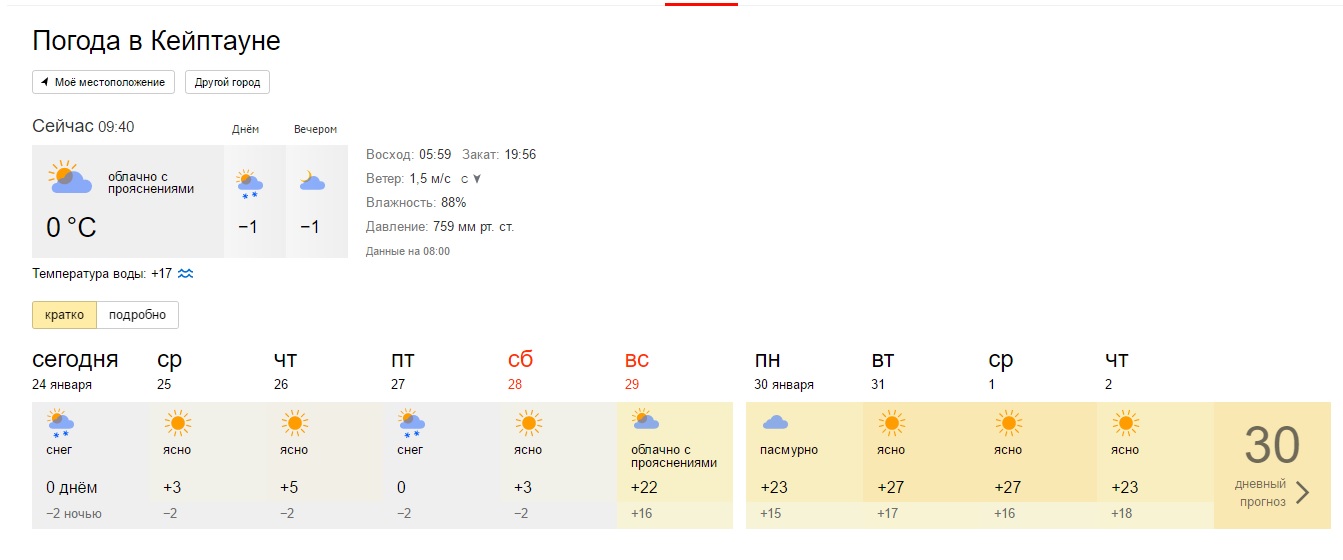 Погода в кейптауне сейчас