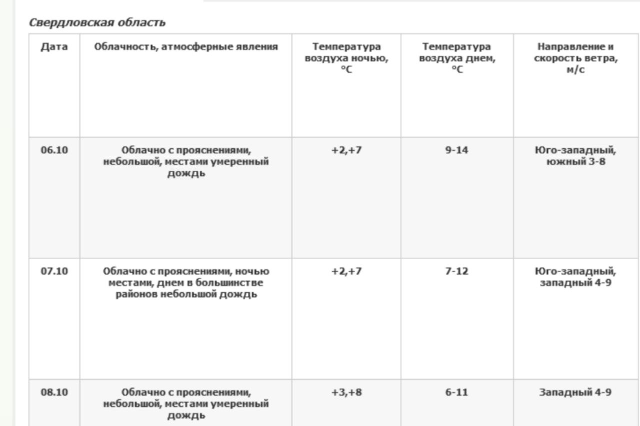 Погода в среднем урале