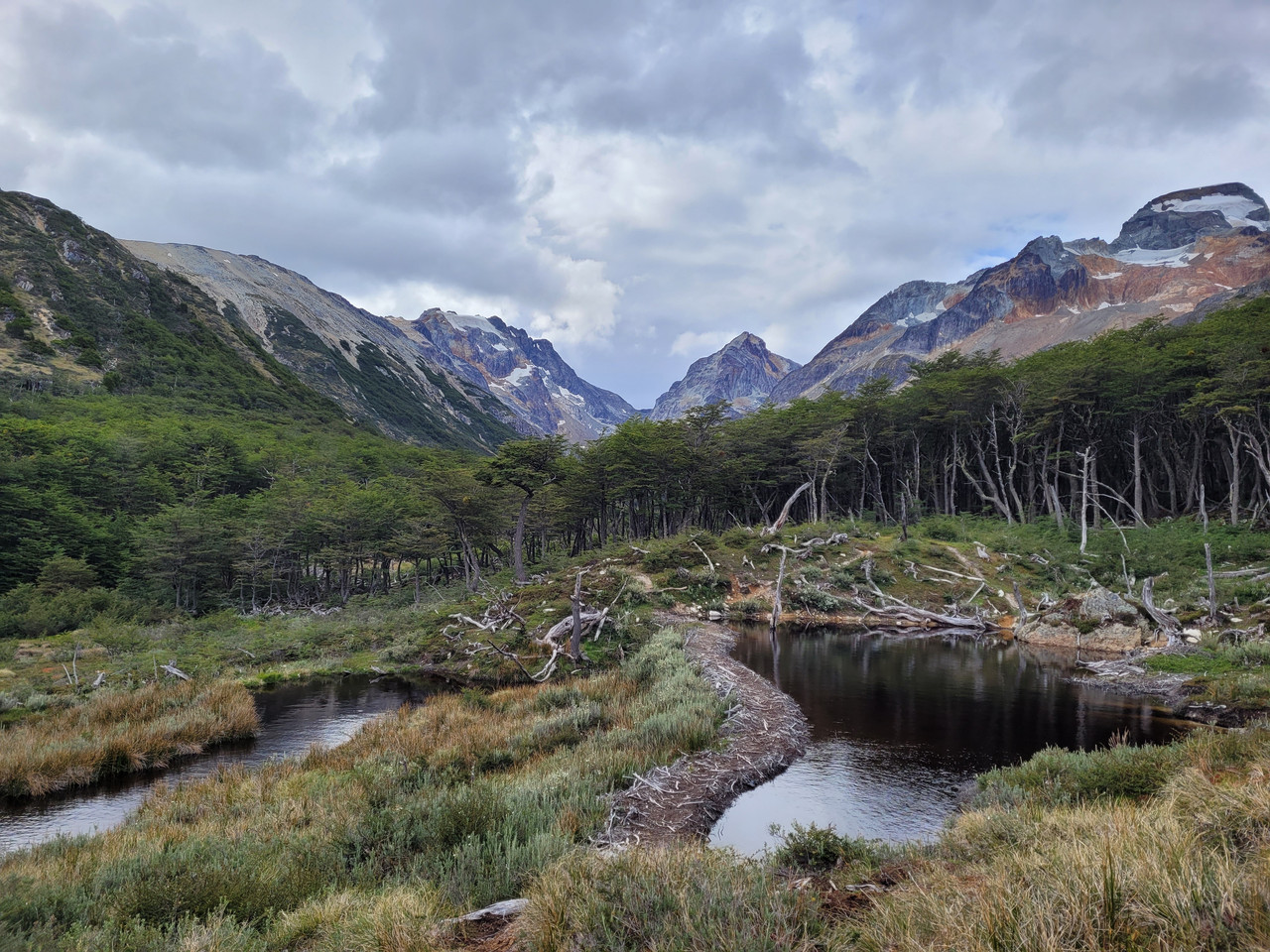 Тропа пересекает болотистую долину Тьерра Майор, идет мимо бобровых плотин и получившихся благодаря им озер. Бобров тут прямо много.