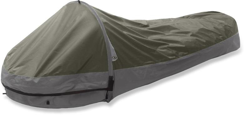 - Бивуачный мешок(биви, bivy bag), это, по сути, водонепроницаемый чехол на спальник, защищающий его и вас от внешних условий. Подходит для небольших выходов в хорошие погодные условия. Встречаются даже варианты с каркасом в головном конце мешка для более комфортного использования. Также можно можно использовать в качестве конденсатного чехла для влажных условий. Конденсат не пропитывает спальник, а остается снаружи. Очевидный минус в минимальном внутреннем пространстве, даже переодеться сложно, что говорить о защите снаряжения, которое не поместится внутрь.