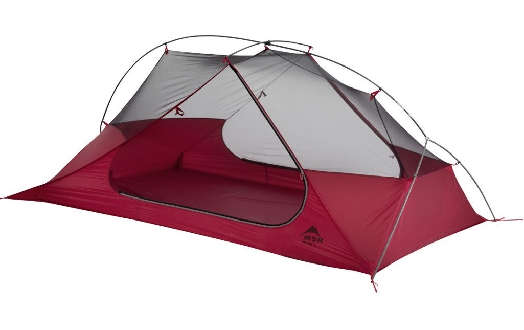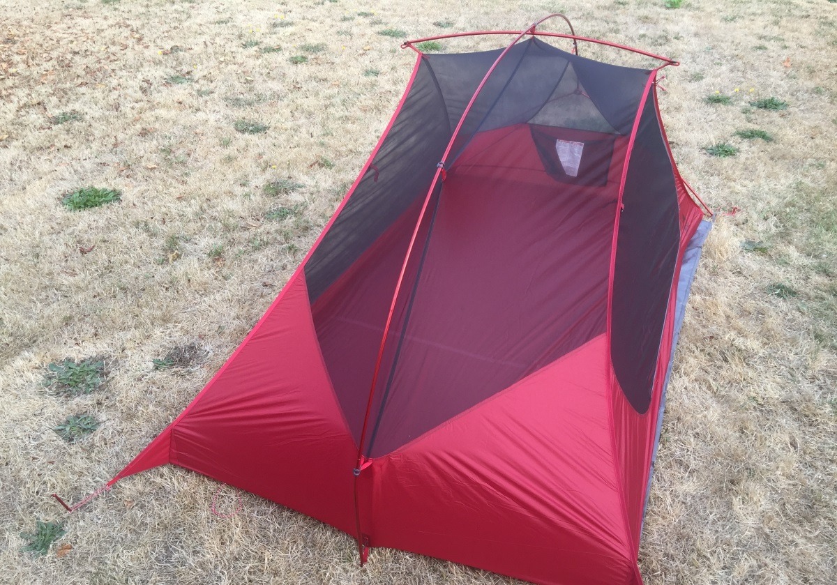 - Semi-freestanding tents. Полусамостоящие палатки. Банальный пример — MSR Freelite. С одной стороны у нее одна дуга, идущая от медианы этой стороны палатки. Если не закрепить углы с этой стороны, они обязательно будут болтаться и всячески мешать. Такое решение так же вызвано экономией веса. Подходят для тех, кто готов пожертвовать надежностью в угоду более легкого веса.