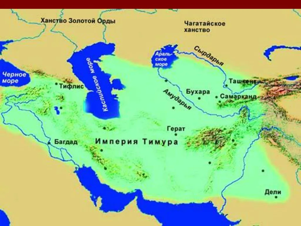 Ниже наши земли 14 века, а еще ниже империя Тамерлана (Тимура).