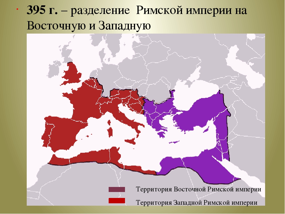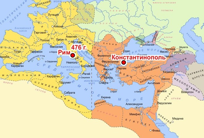 В конце 4 века произошёл распад Римской империи на Западную (с центром Риме) и Восточную (с центром в Константинополе). Первая вскоре была захвачена варварами и прекратила своё существование, а Восточная стала единственной наследницей распавшейся Римской империи и вошла в историю как Византия. Константинополь назван в честь святого равноапостольного Константина Великого.