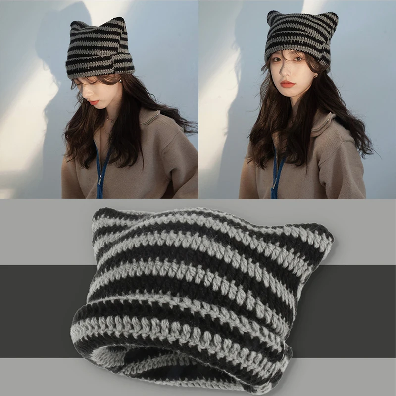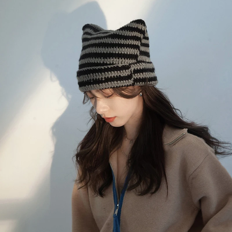 ZxBedYjJДолго искали Pointed Pullover Hat Japanese Beanie Hat Little Devil Striped Knitted Wool Cap Cat Ears Warmer Bonnet Casual Cap Soft Knit Hat, но не могли найти? Предоставляем вашему вниманию Pointed Pullover Hat Japanese Beanie Hat Little Devil Striped Knitted Wool Cap Cat Ears Warmer Bonnet Casual Cap Soft Knit Hat по лучшей цене на рынке!