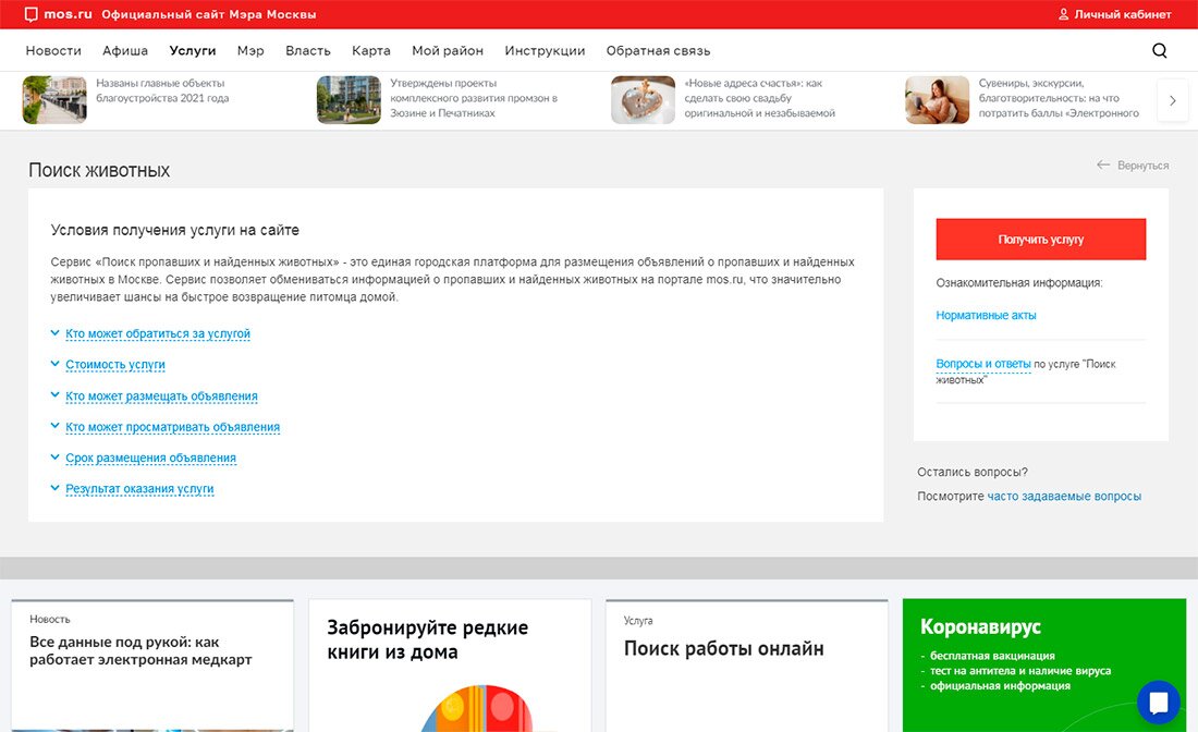 Поиск пропавших животных