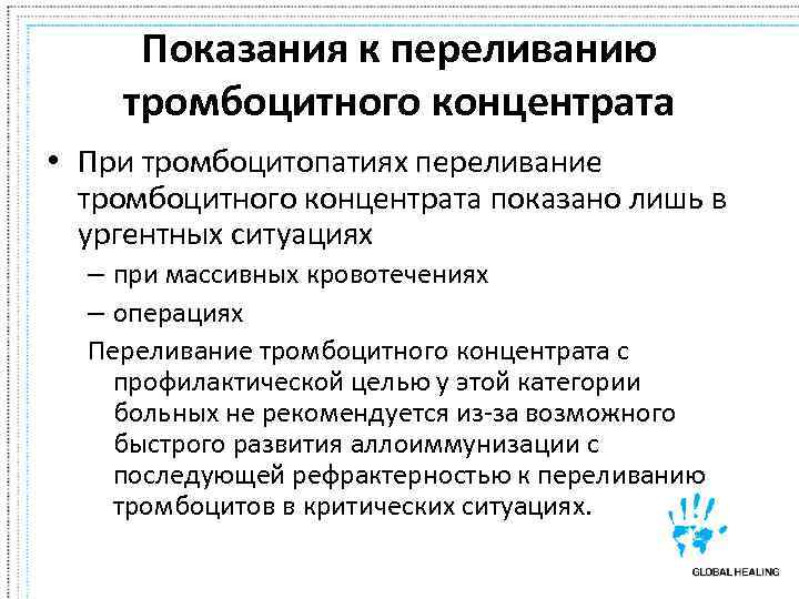 Показания для трансфузии тромбоцитов