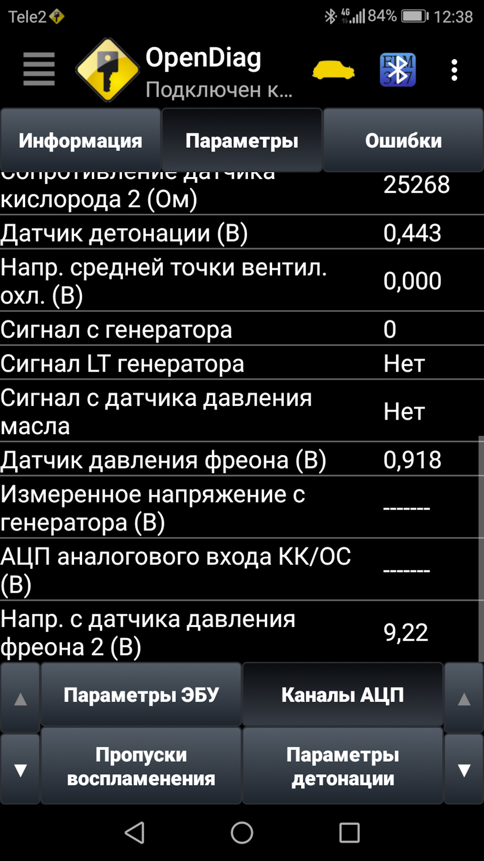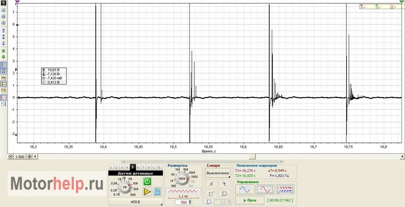 Показатели датчика детонации