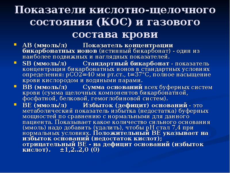 Показатели кислотно щелочного состояния