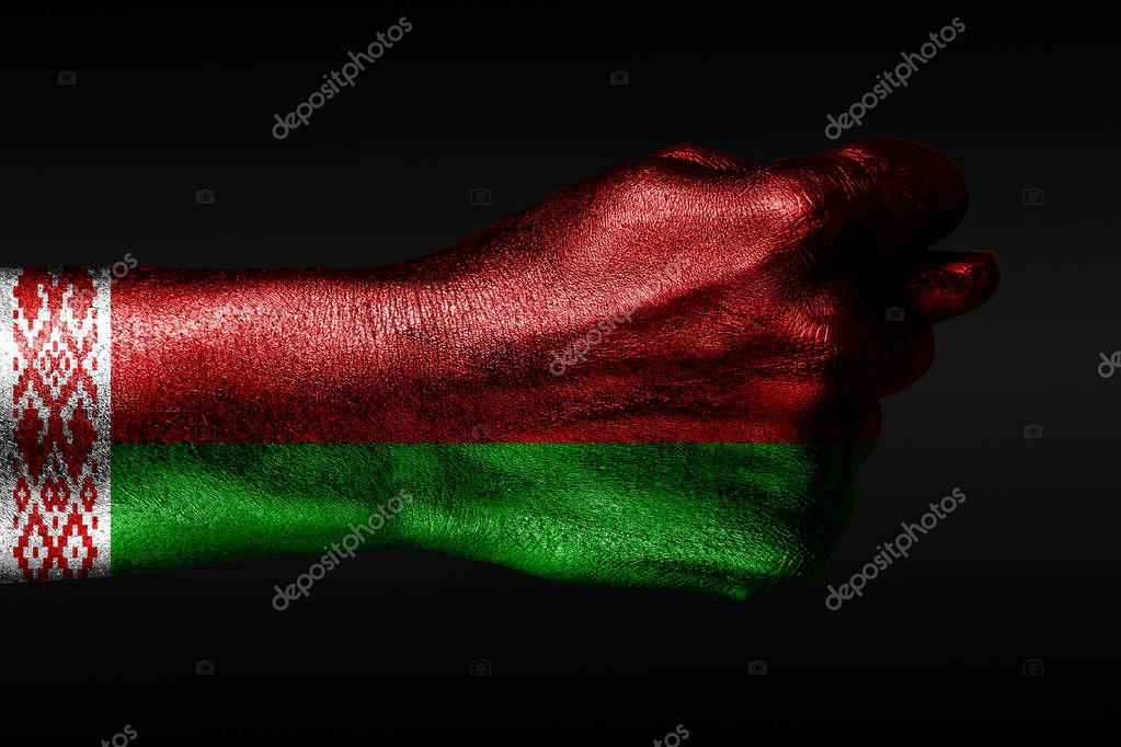 Стоковые фото, картинки и изображения по запросу Фига рука . . . Рука с раскрашенным флагом Беларуси показывает фиг, признак агрессии, разногласия, спор на тёмном фоне . . . .