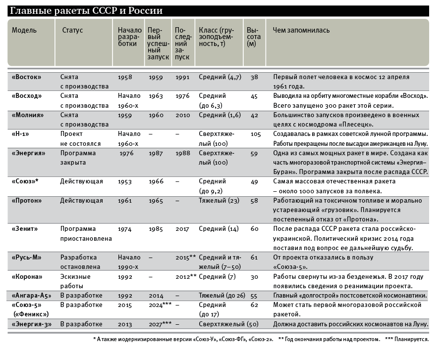 Покорители космоса 20 21 века таблица