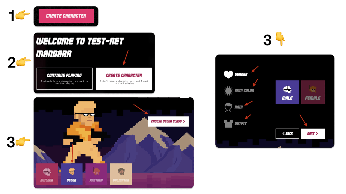 - Обираєте стать, колір шкіри, волосся, і одяг, далі натискаєте "Next".
