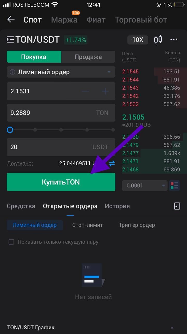 5) Нажимаем купить TON.