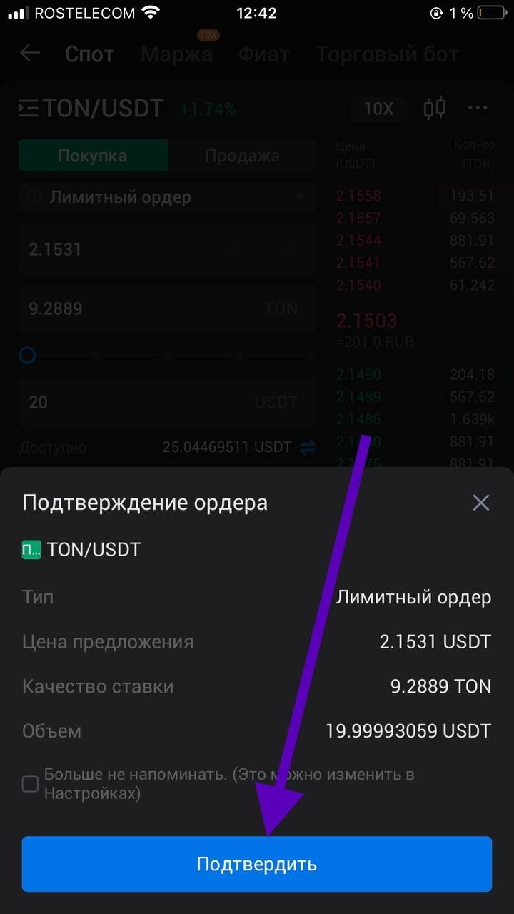 7) Готово, мы купили TON.