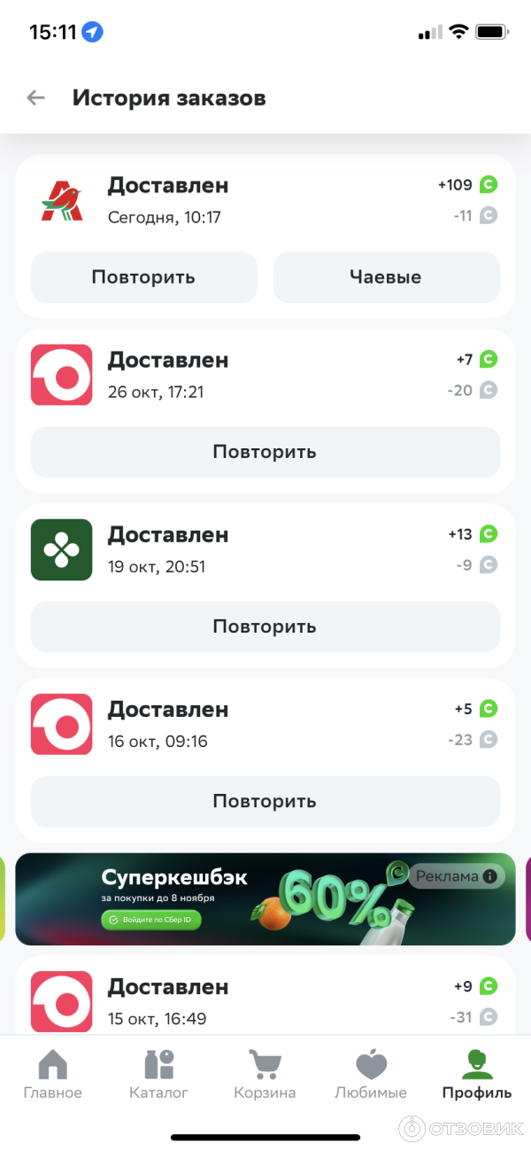 Покупки через сбермаркет