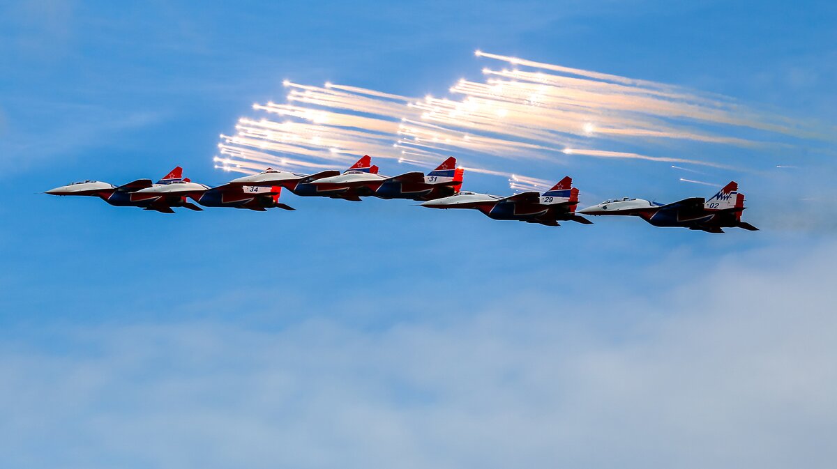 Полет пилотажной группы 96 фотографий