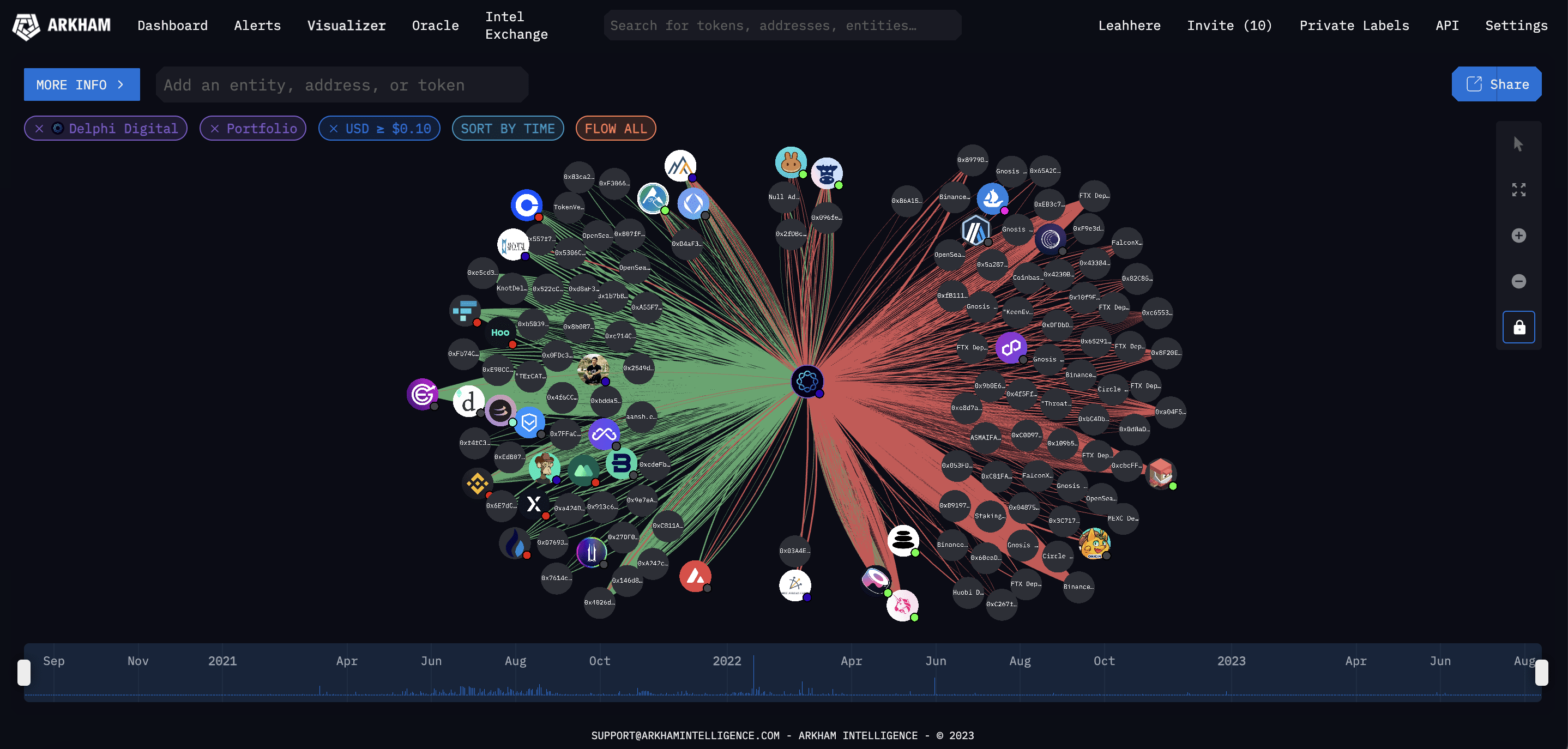 Визуализатор — это функция, которая позволяет пользователям связывать отношения между объектами и адресами, чтобы получить наиболее полную и полную визуализацию этого объекта. В настоящее время Arkham также сотрудничает с сетью партнеров-мультичейнов, предоставляя информацию об этих сетях, включая Bitcoin, Ethereum, BNB Chain, Polygon, Avalanche, Tron и Optimism.
