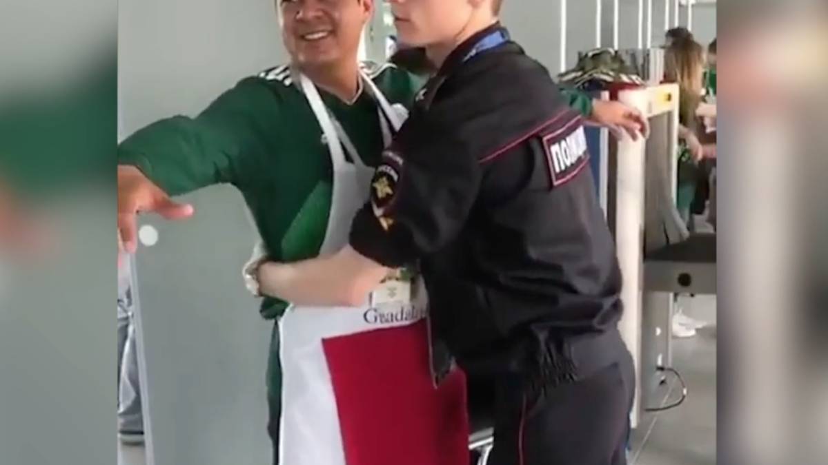 Полицейский досматривает монашку