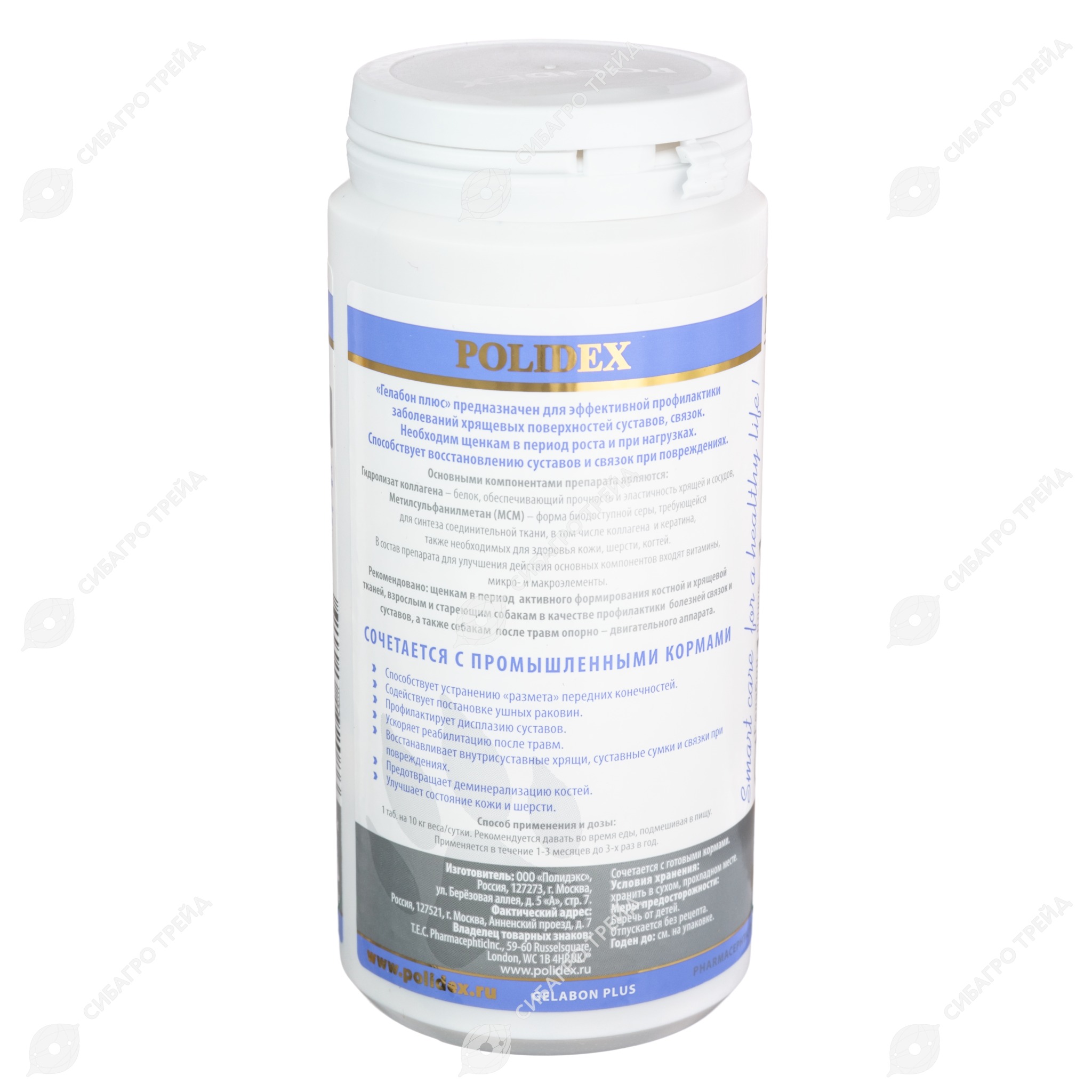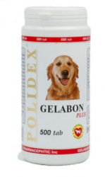 ПОЛИДЕКС Гелабон плюс POLIDEX GELABON PLUS, для собак (1 таб/10 кг, 300 табл) «Гелабон плюс» предназначен для эффективной профилактики заболеваний хрящевых поверхностей суставов, связок . Необходим щенкам в период роста и при нагрузках . Способствует восстановлению суставов и связок при повреждениях . Основными компонентами препарата являются: